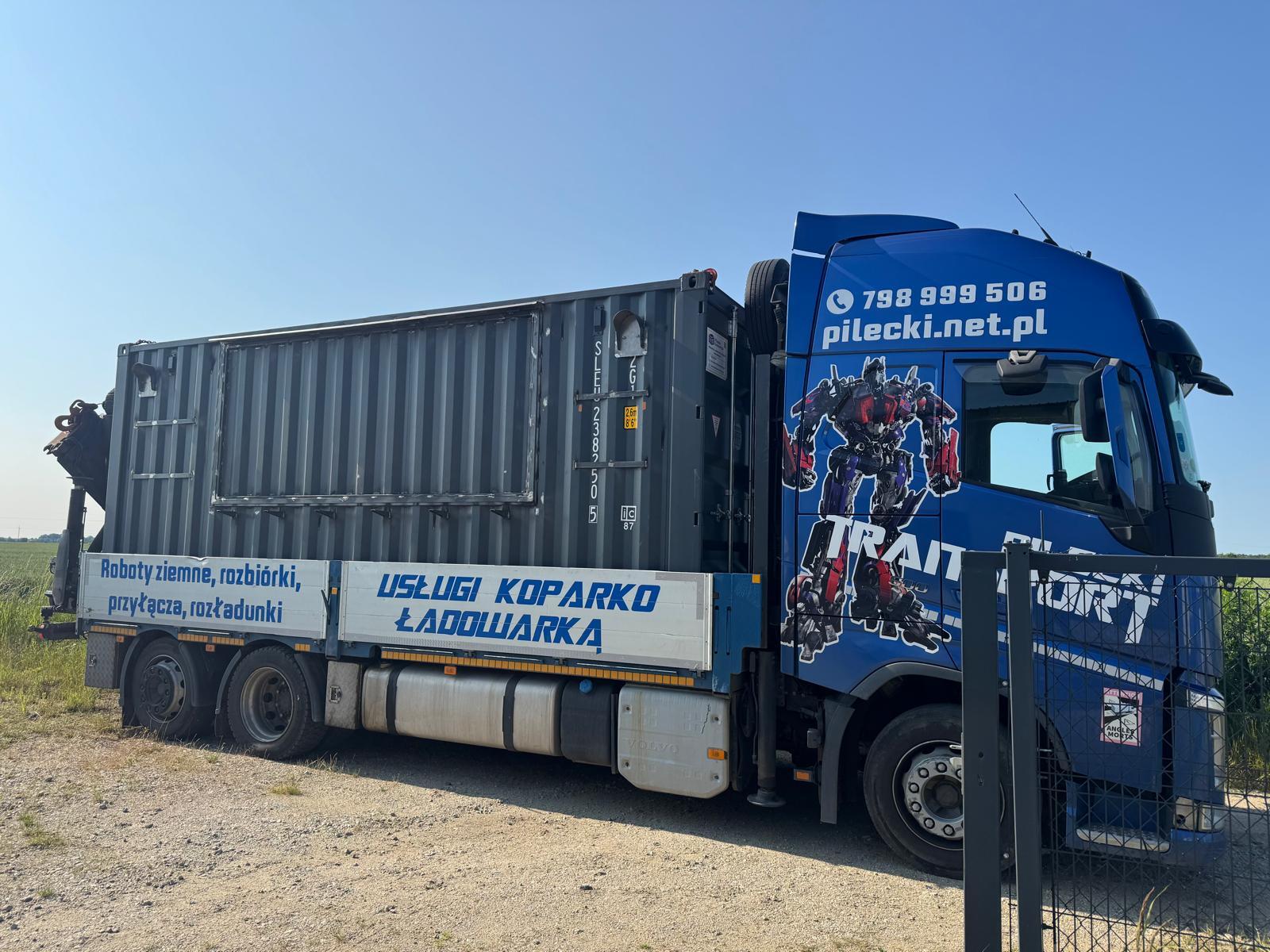 Dysponujemy nowoczesnym samochodem ciężarowym z przyczepą tandem do przewozu kontenerów o udźwigu do 10 ton oraz koparką Mecalac, co pozwala nam na realizację nawet najbardziej wymagających zleceń.